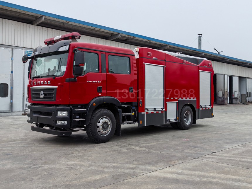 汕德卡7噸水罐消防車采用中國重汽集團濟南商用車ZZ5206N471GF5底盤改裝而成。整車由消防員乘員室和車身兩大部分組成,乘員室為原裝雙排,可乘坐2+4人,該車為外露罐結構,車身前部為器材箱,中部為罐體,后部為泵房。載液罐體為優質碳鋼,內部噴涂環氧底漆及環氧瀝青漆,與底盤采用彈性連接,載水量7150kg,裝備了上海雄真消防設備有限公司生產CB10/60-XZ型常壓消防泵,額定流量60L/S,車頂安裝成都威斯特消防機械有限公司生產的PL8/60W型車用消防炮。該車最大的特點是載液量大、操控性好、維修簡便。可廣泛應用于公安消防隊、廠礦企業及社區、碼頭等場所,撲救大型油類火災和一般物質火災。 | |||