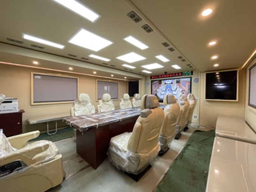 JDF5160XZHZ6型指揮車采用汕德卡ZZ5186XXYN561GF1底盤(pán)改裝,重汽MC07H.35-60發(fā)動(dòng)機(jī),350馬力,采用衛(wèi)星、5G通訊方式遠(yuǎn)程數(shù)據(jù)圖像的傳輸,與后方進(jìn)行聯(lián)系,同時(shí)裝備音頻視頻采集與處理、圖像實(shí)時(shí)傳輸設(shè)備。車內(nèi)設(shè)置有線、無(wú)線和計(jì)算機(jī)數(shù)據(jù)通信網(wǎng)絡(luò),可實(shí)現(xiàn)全時(shí)段、全區(qū)域快速與指揮中心聯(lián)網(wǎng),實(shí)現(xiàn)語(yǔ)音、數(shù)據(jù)、圖像的多媒體通訊互動(dòng),實(shí)現(xiàn)控制、交換、決策、查詢、記錄等多功能調(diào)度指揮 ; | |||