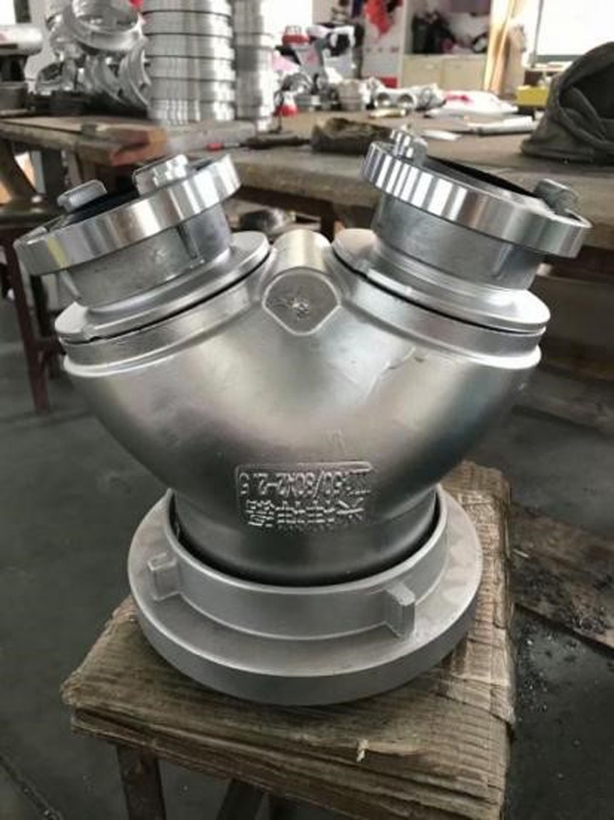 集水器是將消防水帶輸送的兩股或兩股以上的正壓水流合成一股所必須的連接器具。它由集水器體、單向閥和水帶接口組成,有多個(gè)進(jìn)水口和一個(gè)出水口,材料主要采用鋁硅合金,制造工藝主要采用金屬膜澆鑄。